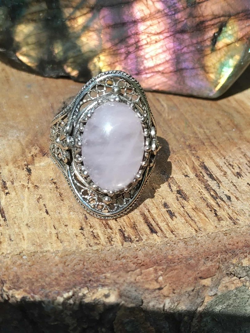 La bague de cocktail en argent sterling avec quartz rose et filigrane, un bijou tendance et élégant qui vous apportera amour, confiance en soi et harmonie. Parfait pour ajouter une touche de féminité à vos tenues!