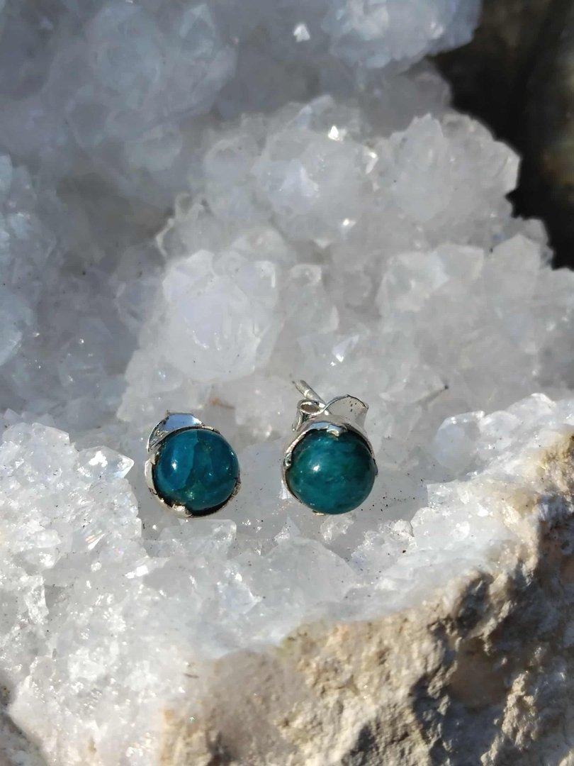 Chaque pierre est sertie dans une monture en argent 925, métal noble reconnu pour sa durabilité et son éclat intemporel. L’argent amplifie l’énergie des minéraux et protège leur vibration au quotidien. Design discret au format clous d’oreilles apatite (fermoir poussette) pour un maintien sûr et confortable au quotidien.