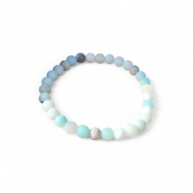 Bracelet en amazonite multicolore – perles 8 mm – monté sur élastique. Ses nuances bleu – vert et marbrures naturelles en font une pièce unique, idéale au quotidien pour une touche douce et apaisante.