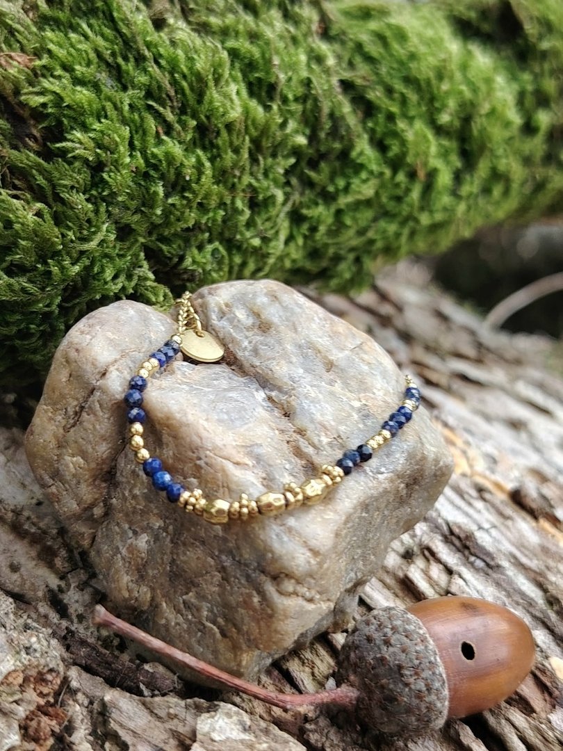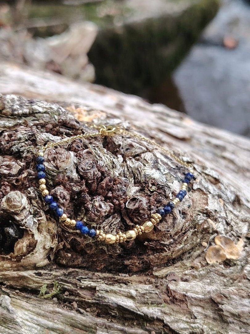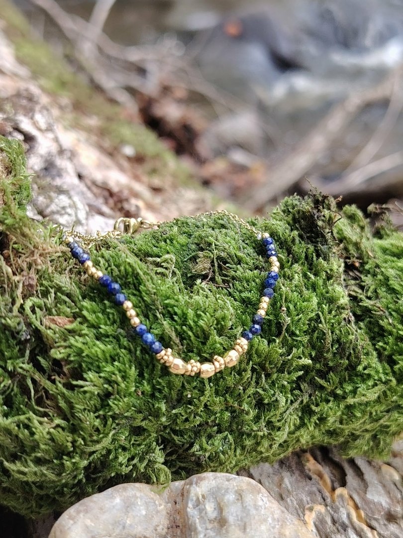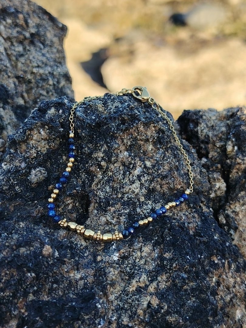 En résumé Un bracelet fin, élégant et facile à vivre, sublimé par la noblesse du lapis-lazuli et la chaleur de l’acier doré. Pensé pour vous suivre partout sans contrainte, c’est l’indispensable minimaliste qui illumine votre style tout en vous enveloppant de sa douce énergie.