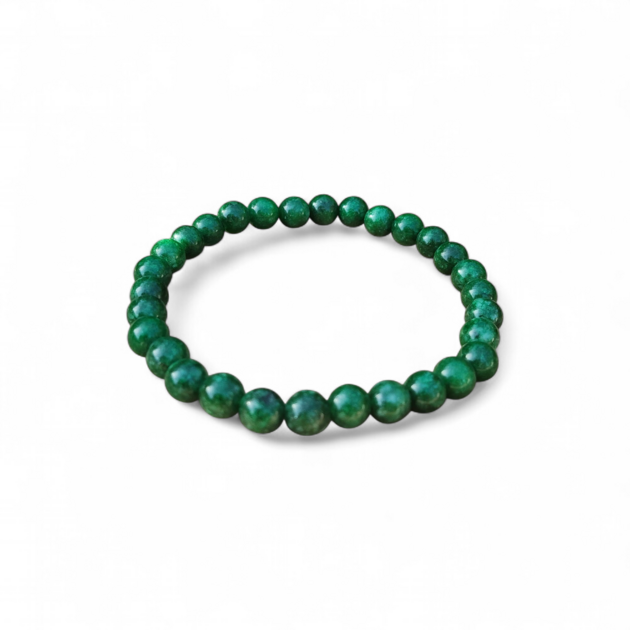 Bracelet Jade africain en perles rondes 6 mm sur élastique, aux nuances vert marbré naturelles. Bienfaits – tradition – : apaisement, ancrage, harmonie du cœur et équilibre émotionnel
