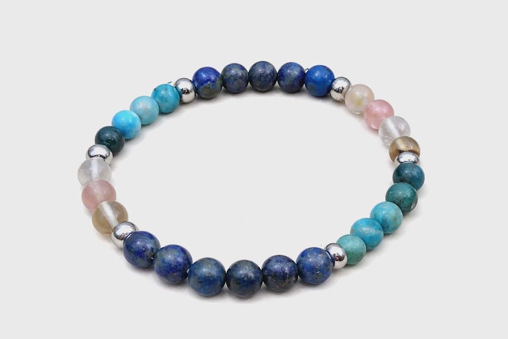 Bracelet Minceur en apatite, lapis lazuli et tourmaline melon d’eau. Bijou naturel, lumineux, pensé pour l’équilibre, la clarté et la motivation douce.
