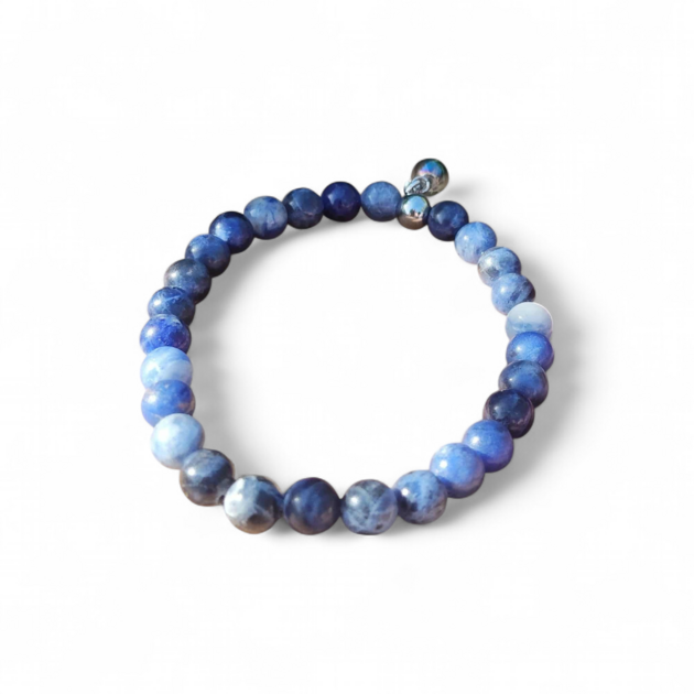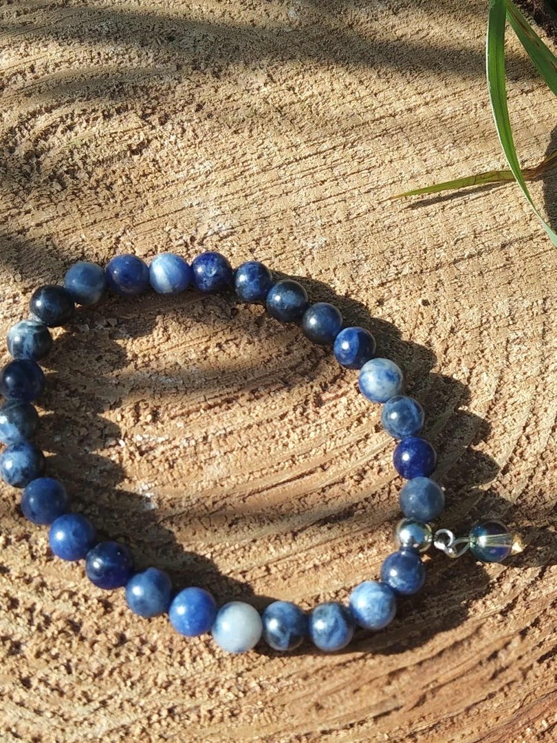 Bracelet en Sodalite naturelle ud83dudc99, pierre bleue appréciée en lithothérapie pour apaiser le mental et soutenir une communication plus calme et fluide. Chaque bracelet Magic Gaïa est unique, purifié au bol chantant en cristal 528 Hz avant envoi u2728