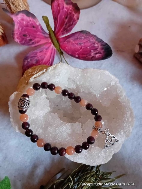 Retrouvez joie de vivre, optimisme et courage avec le bracelet viking créé par Magic Gaïa, composé de grenat et de pierre de soleil de qualité extra. » « Offrez vous un véritable trésor de bienfaits pour votre corps et votre esprit avec le bracelet viking créé par Magic Gaïa, une source d’énergie positive qui vous apportera joie, force et assurance.