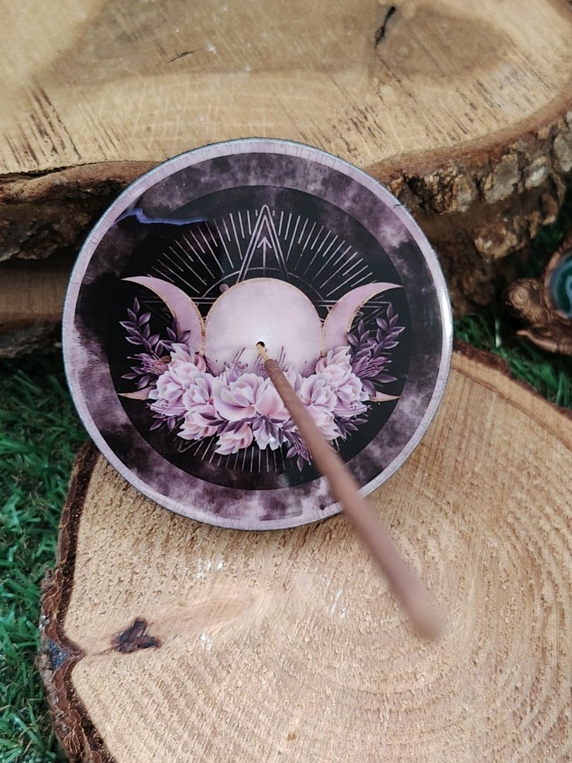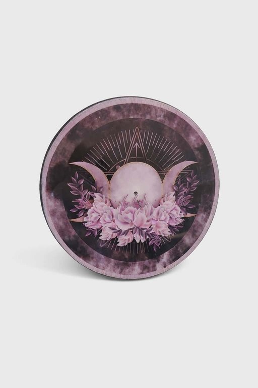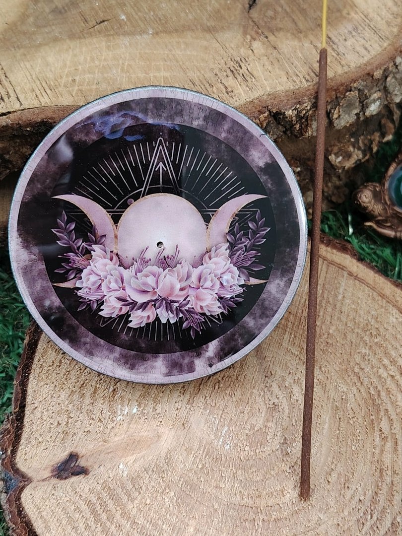 Ce brûleur d’encens de forme ronde est délicatement paré du motif de la Triple Lune, un symbole puissant intimement lié aux cycles de la nature, à l’intuition et à la féminité sacrée. Ses nuances rosées et violacées s’entremêlent pour créer une aura mystique et poétique, invitant instantanément à l’apaisement de l’esprit.