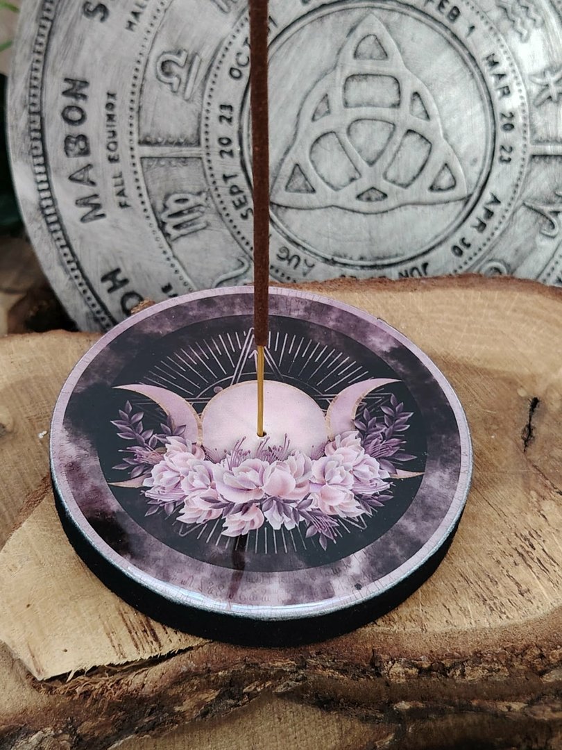Ce brûleur d’encens en bois, délicatement orné du symbole sacré de la Triple Lune, est une invitation à la douceur et au recueillement. Conçu pour accueillir vos bâtons d’encens en toute sécurité, il transforme chaque instant de relaxation en une véritable expérience sensorielle et visuelle.