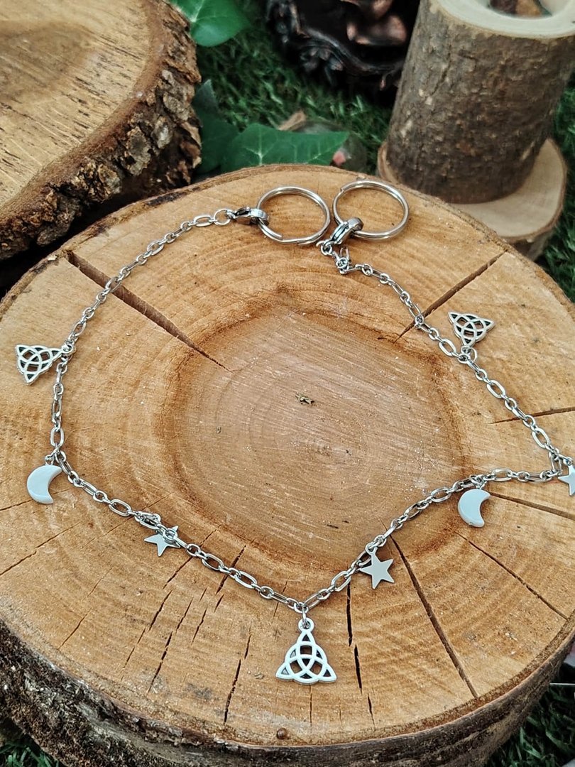 Cette chaîne de pantalon / short / jupe personnalisable est l’accessoire parfait pour apporter du style et une petite touche ésotérique à tes tenues. Tu la clipses simplement aux passants de ton pantalon, de ton short ou de ta jupe, et elle fait tout le boulot : look affirmé, détails qui brillent et énergie des pierres naturelles (selon les breloques choisies).