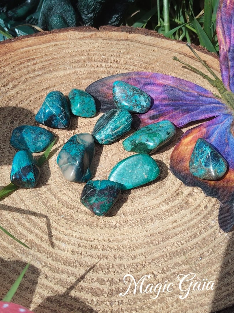 La Chrysocolle: Une pierre de santé et de sérénité. Apaise l’esprit et le corps, favorise la paix intérieure et soulage les douleurs physiques.