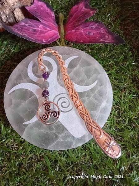 Découvrez les Marque ta page celtes, des marque – pages uniques en pierres qui ajoutent une touche de beauté et d’énergie positive à chaque lecture. Améthyste et labradorite de qualité extra pour les amoureux de la lecture et des pierres.