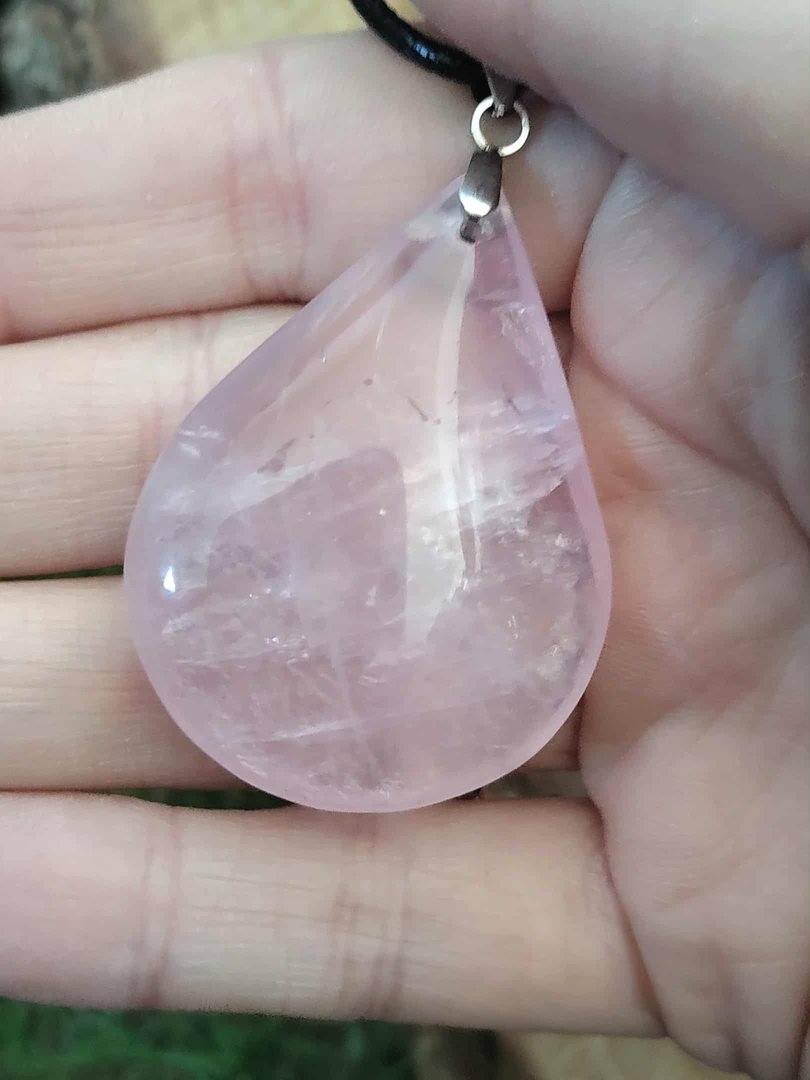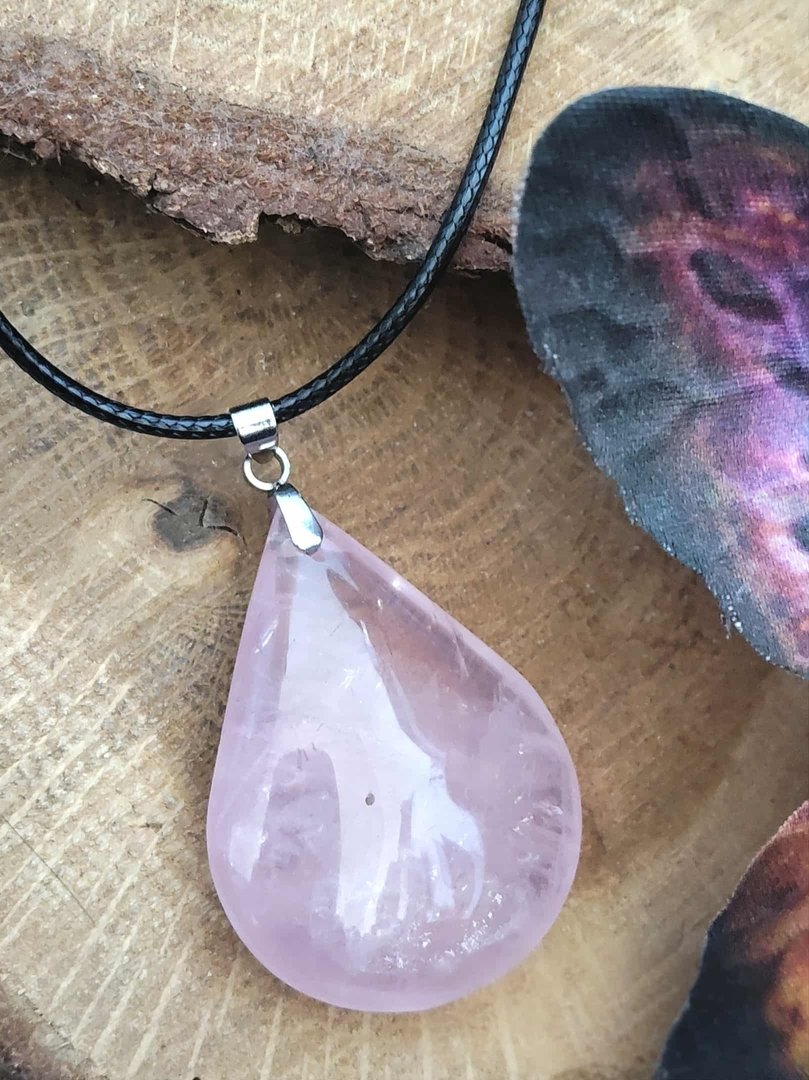 Type : Pendentif quartz rose naturel, forme goutte (format généreux)