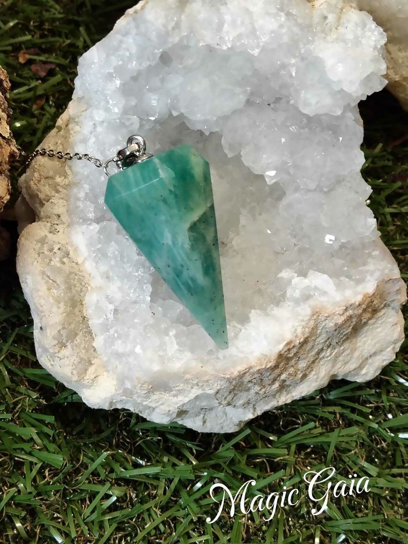 Plongez dans le monde de la magie et de la détente avec le Pendule Amazonite créé par Magic Gaïa. Un puissant allié de douceur et de calme, il favorise la créativité et le succès, tout en protégeant des pollutions environnantes.