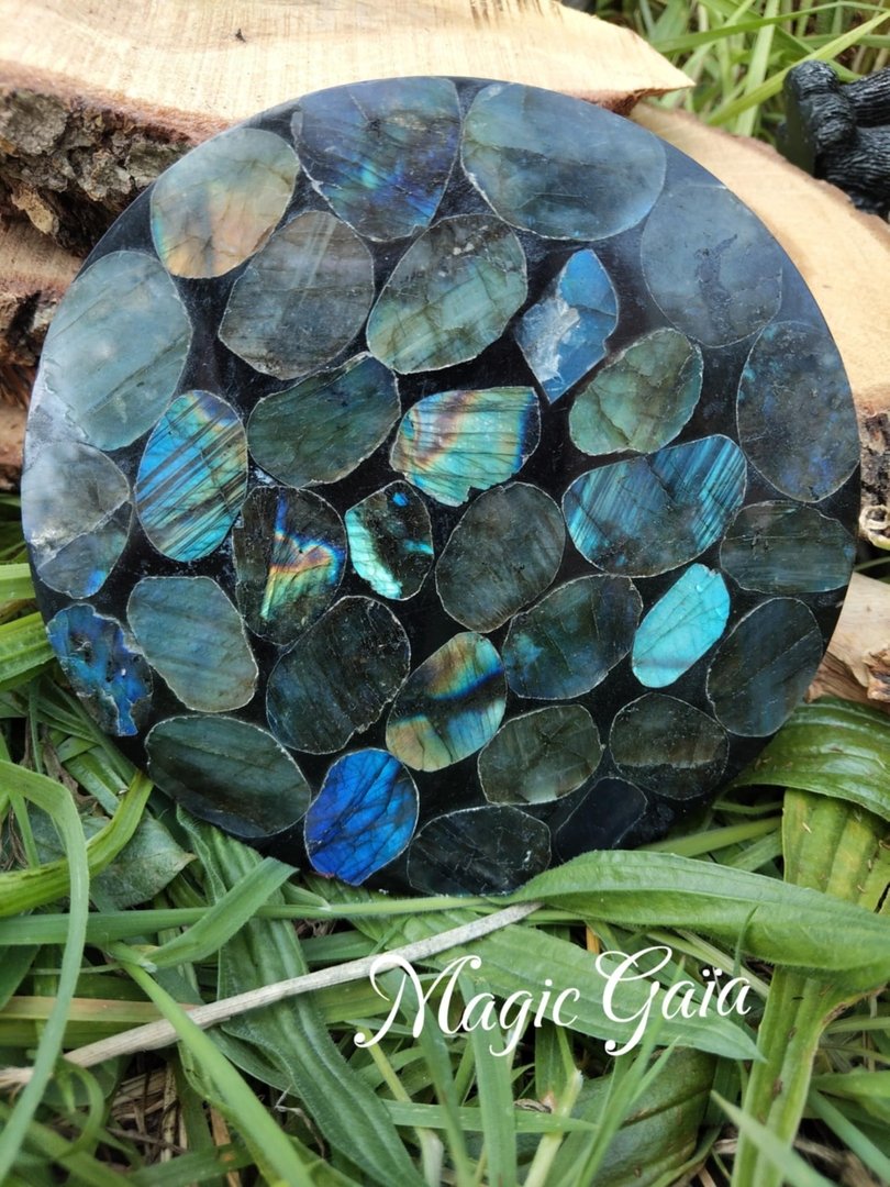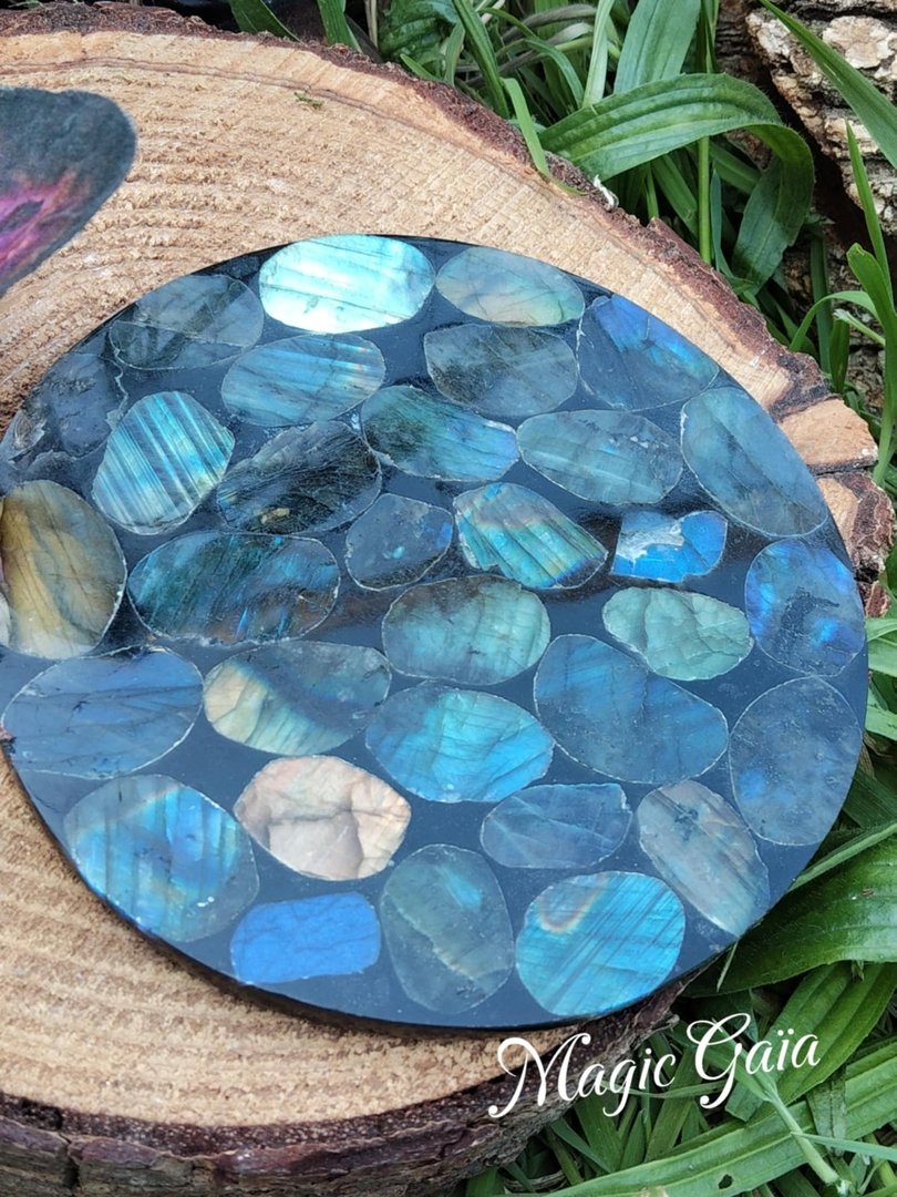 Le plateau de rechargement en labradorite, fabriqué à Madagascar, est l’outil idéal pour recharger vos pierres. Améliorez l’énergie de vos objets et bénéficiez de la protection et de la régénération offertes par la labradorite.