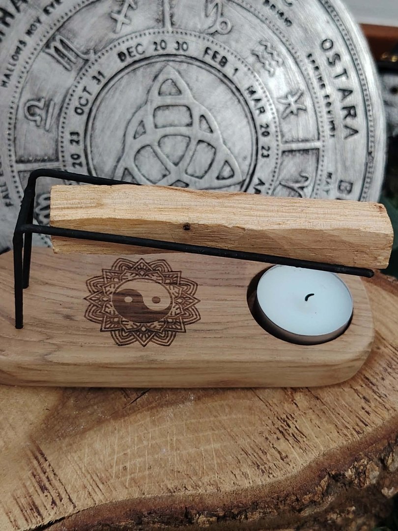 Porte palo santo et sauge en bois – Symbole Yin & Yang